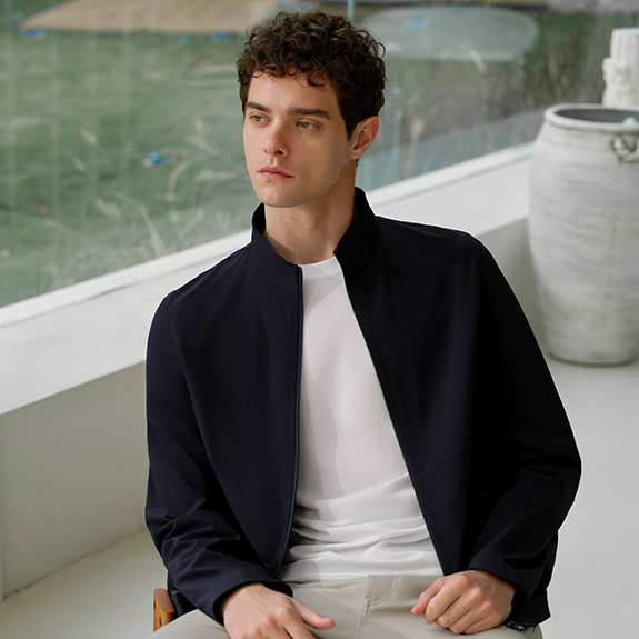 修身版藏青休閑夾克