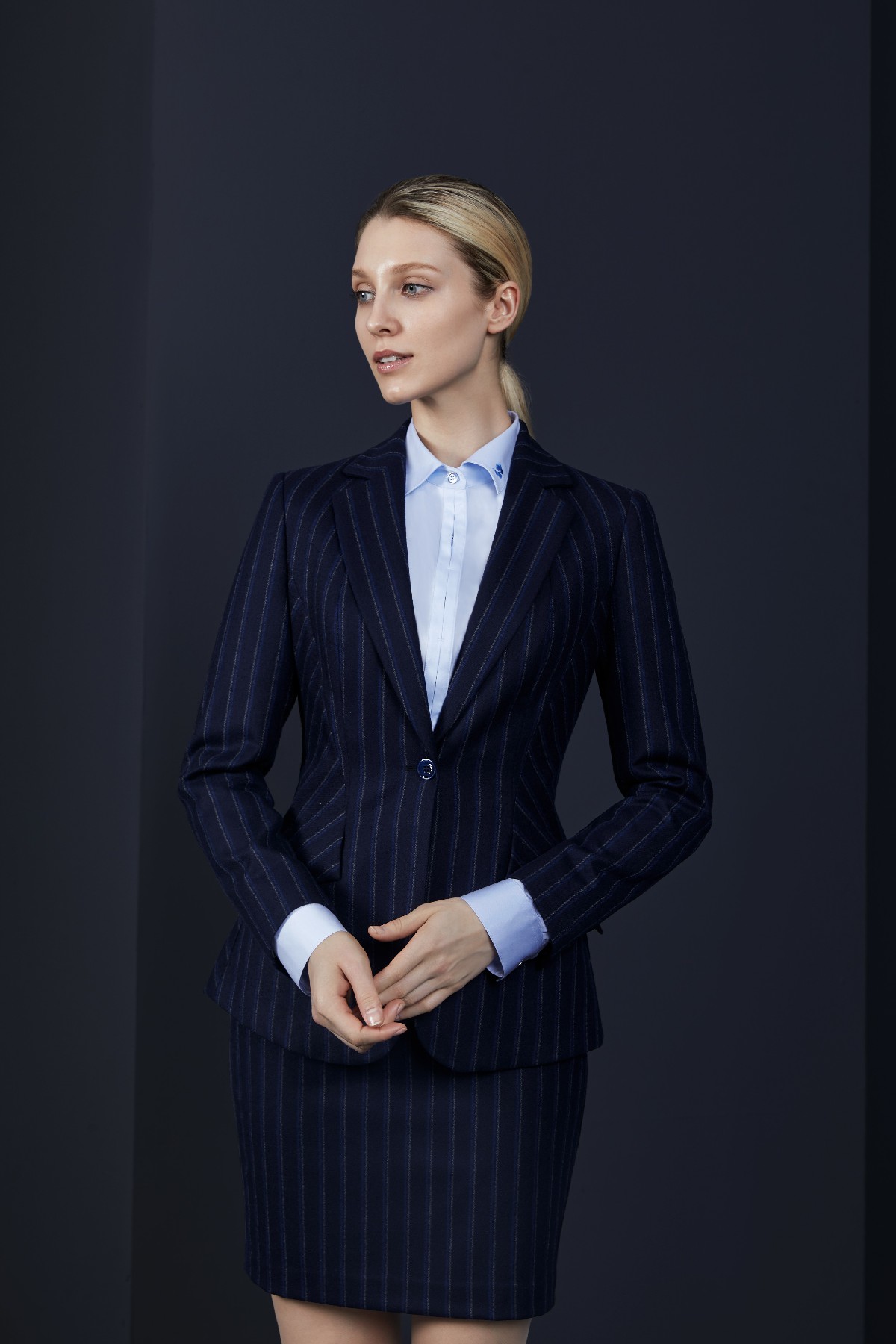 藍色條紋免打理女套裝
