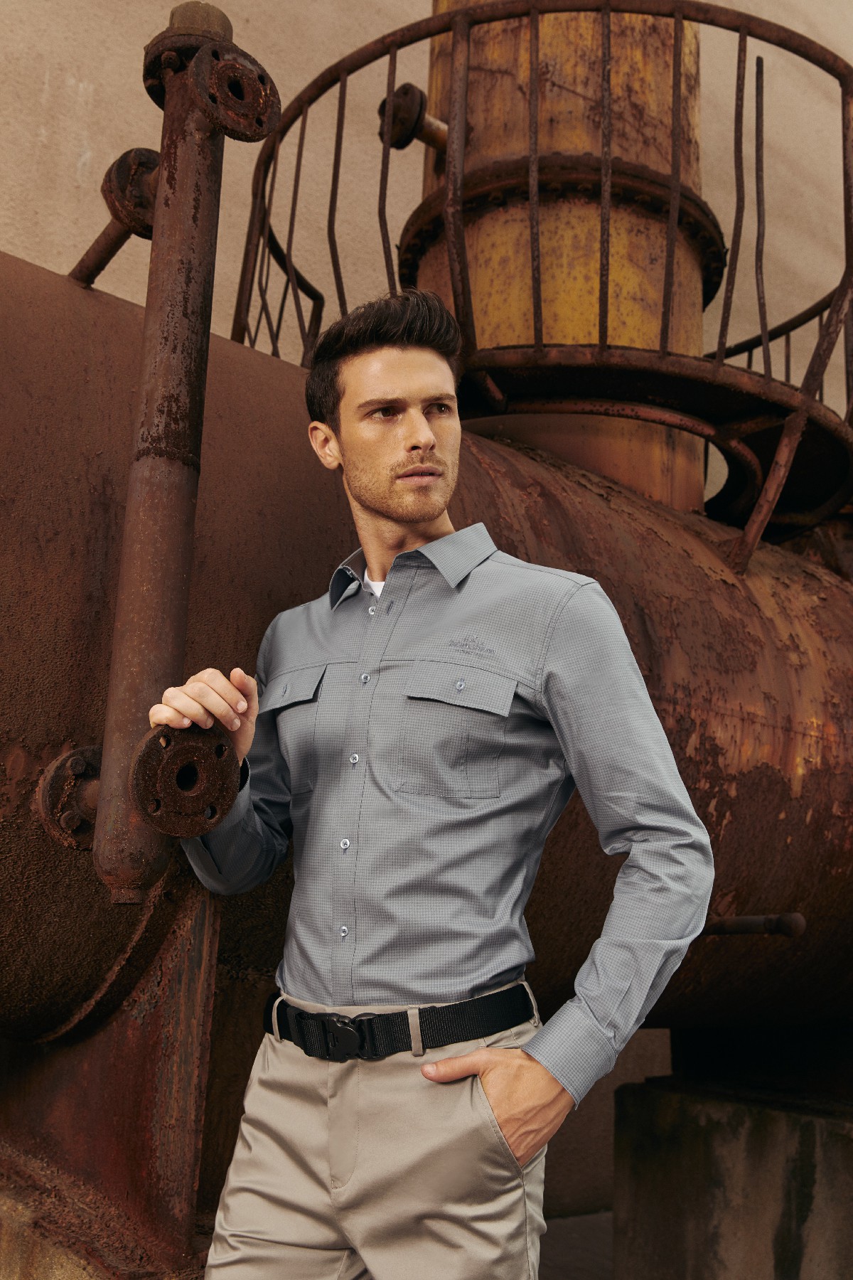 鮮明的工裝特點(diǎn),剪裁線條干凈利落。
