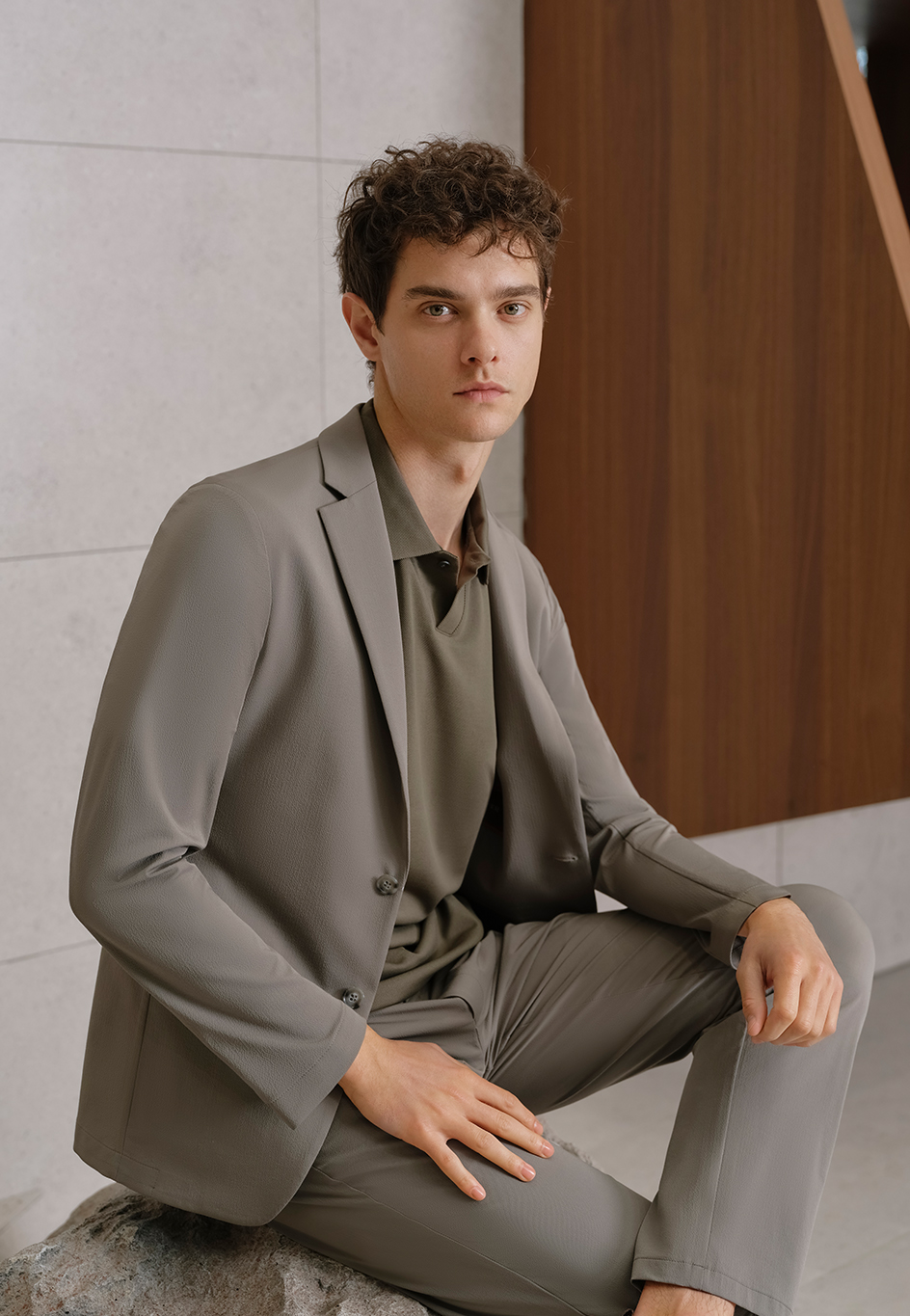 體育場與運動套西的碰撞,混搭出更豐富的視覺效果,打破傳統西裝的沉悶,科技與功能性相結合,無懼褶皺煩惱。面料采用75%錦綸18%莫代爾7%氨綸,勻稱的泡泡紗微皺效果,挺括有型。擺脫冬日積攢的慵懶,于生活中加載活力,輕運動套裝身隨心動。