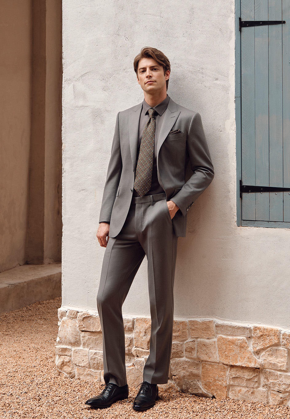 利落戧駁領+單排二粒扣款式,輕松穿出瀟灑干練氣質,西服口袋、四粒袖扣款式,給你由內而外的精致與高級,配套西褲采用橡根滑腰設計,腰部松緊無束縛,褲型線條流暢利落簡約。